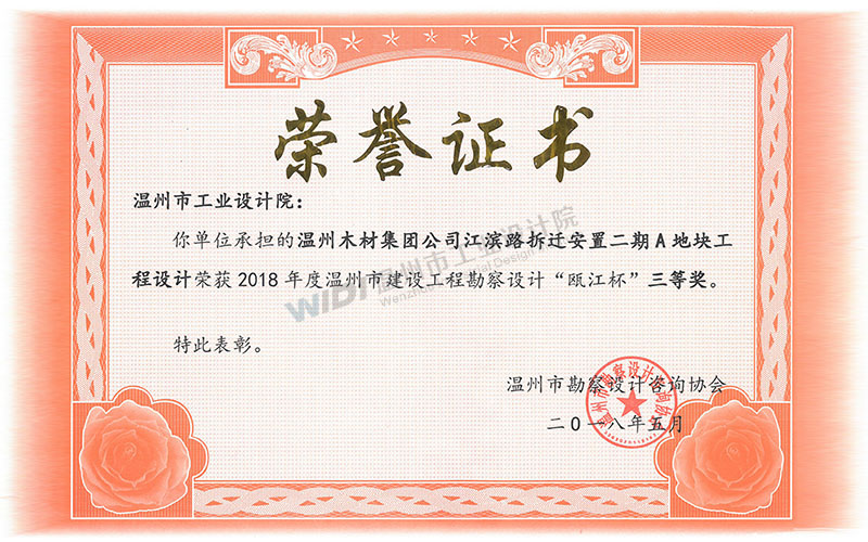 溫州木材集團(tuán)公司江濱路拆遷安置二期A地塊工程設(shè)計 甌江杯三等獎