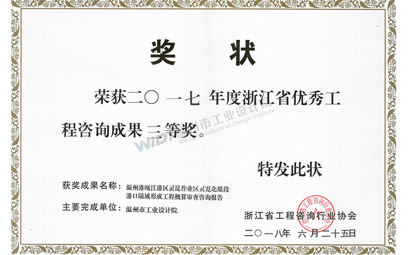 溫州港甌江港區(qū)靈昆作業(yè)區(qū)靈霓北堤段港口陸域形成工程概算審查咨詢報告 省優(yōu)秀工程咨詢成果三等獎