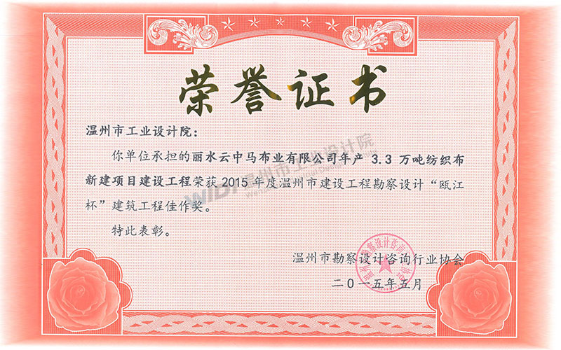麗水云中馬布業(yè)有限公司年產(chǎn)3.3萬噸紡織布新建項(xiàng)目建設(shè)工程 甌江杯建筑工程佳作獎