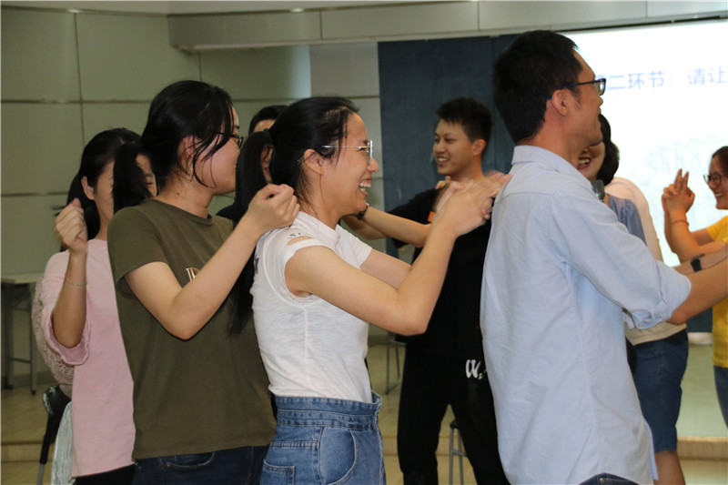 “同心圓”五個活動環(huán)節(jié)。其中,“大風(fēng)吹”環(huán)節(jié)讓大家自我介紹并相互認(rèn)識,“請讓我為你按摩一下下”拉近了大家的距離感,同時也使大家心情得到放松,“銜紙杯傳水”環(huán)節(jié)更將活動氣氛帶入了高潮。